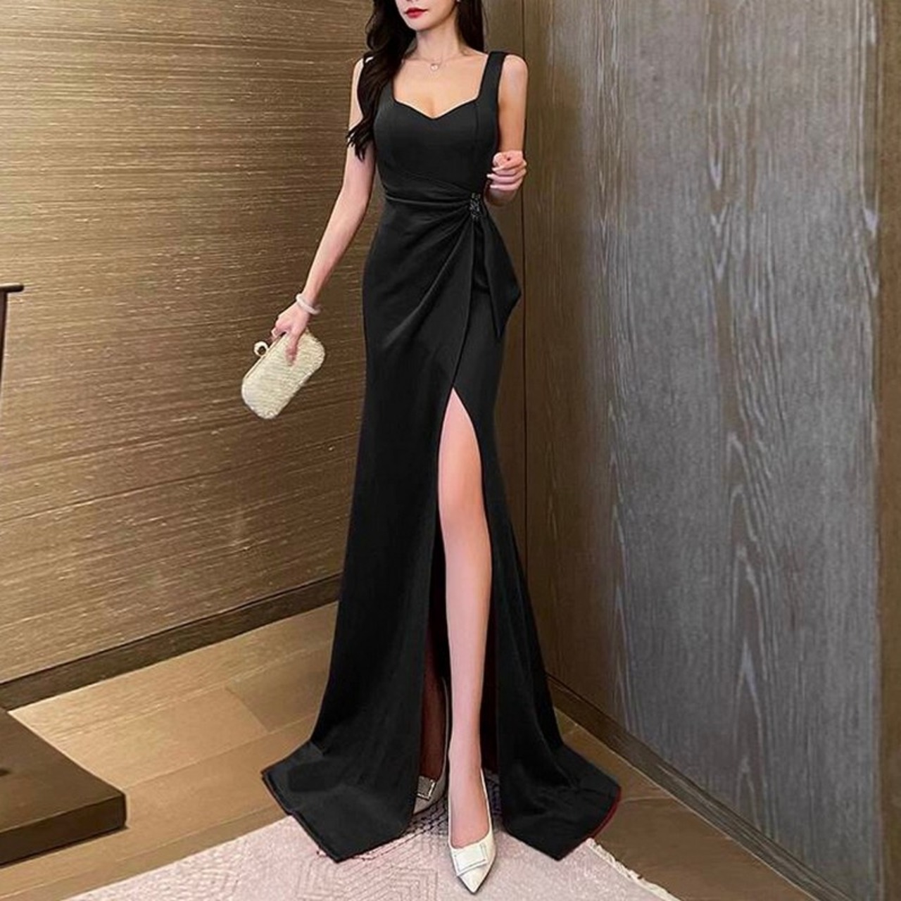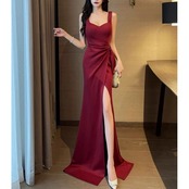 流れるようなサイドドレープが、美しいシルエットを際立たせる一着。