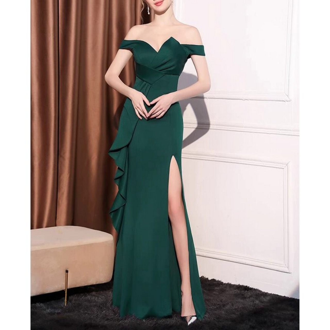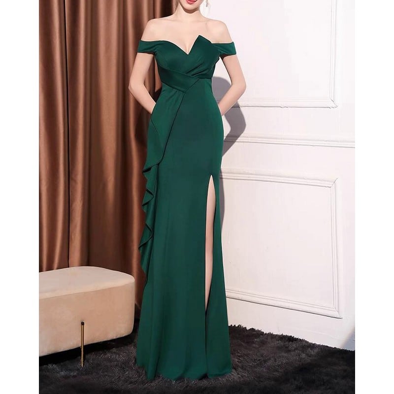 流れるようなドレープと美しい肩のラインが、大人の魅力を引き立てます。