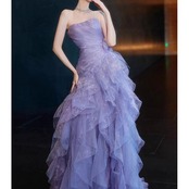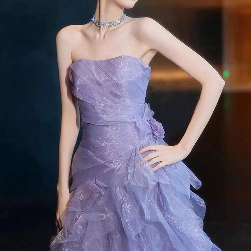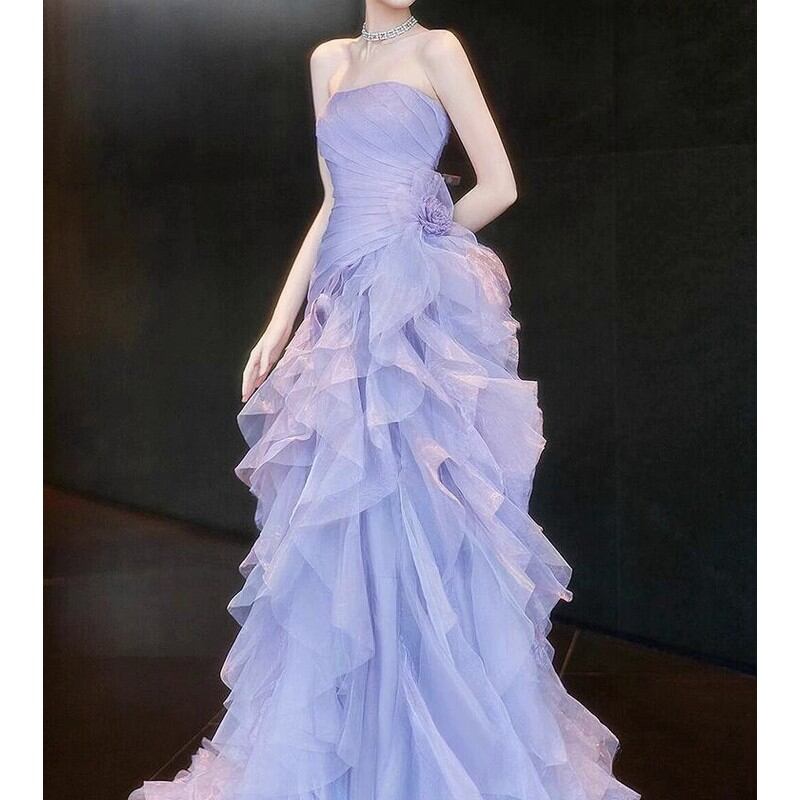 花びらのように揺れるチュールが歩くたびに優雅な印象を演出します。