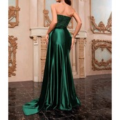 眩いグリッタートップと光沢あるマーメイドシルエットが華やかさを演出。
