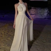 ギャザーで寄せたバストラインが優雅な印象に。