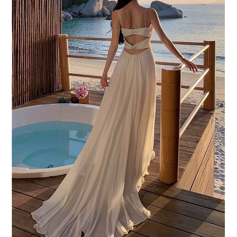 胸元から流れるクロスデザインが優しくボディラインに寄り添います。