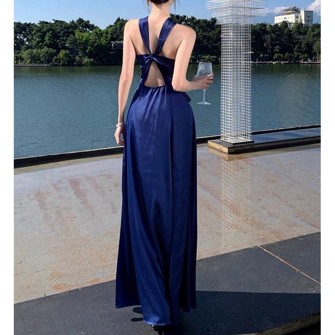 大胆なスリットとホルターデザインが、大人の余裕を感じさせます。