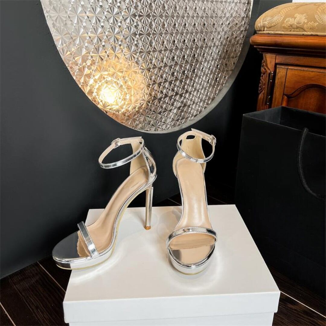足首を華奢に魅せる極細ストラップで、洗練された足元を演出。