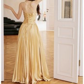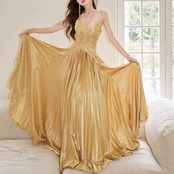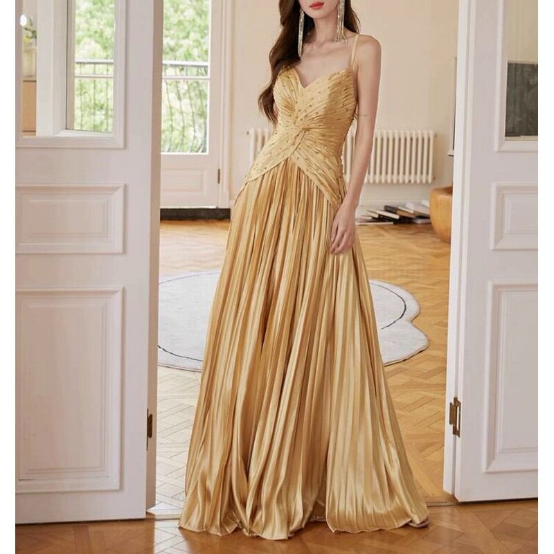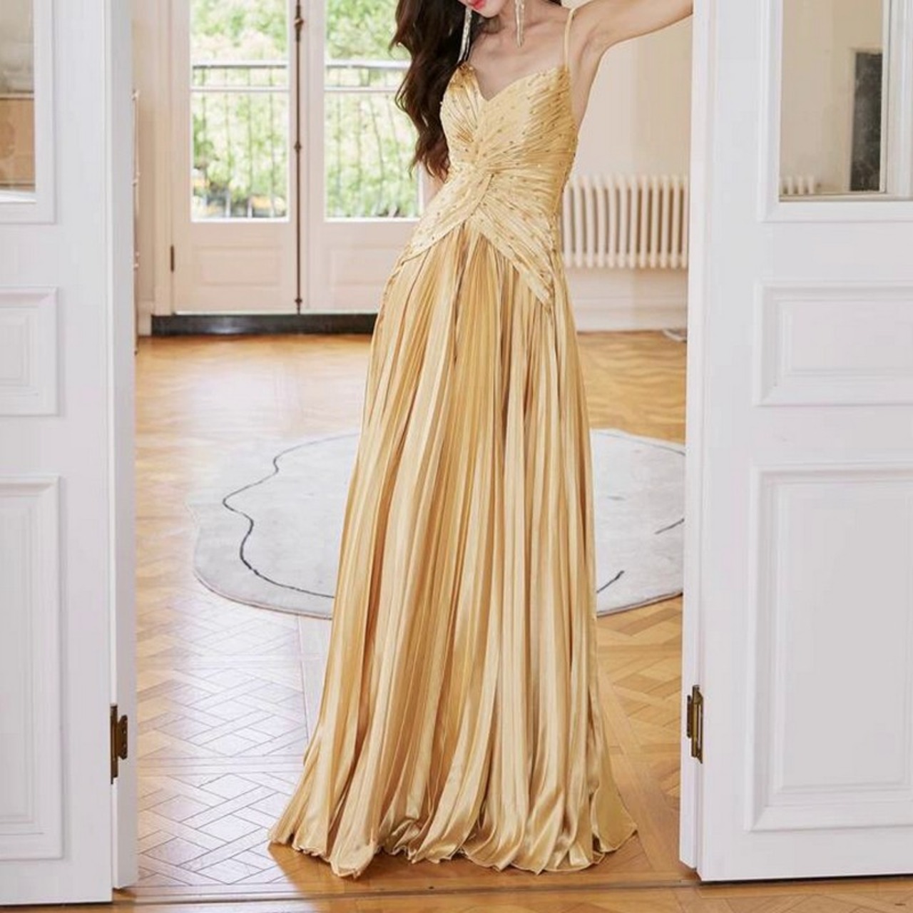 圧倒的な光沢感と立体プリーツが、舞うたびに優雅に広がる華やかなドレス。